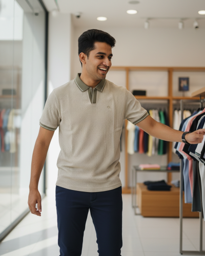 Calvin Klein Beige Ribbed Polo T-Shirt for Men – Comfort Fit Casual Wear | ComfortsBD #1001-1