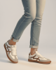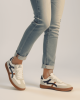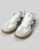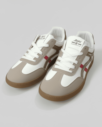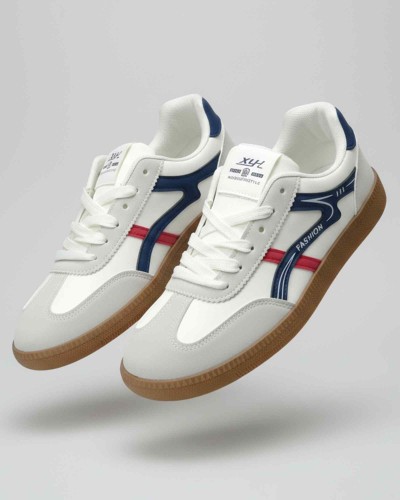 Men’s White Retro Casual Sneakers with Navy & Brown Stripes Gum Sole Fashion Shoes #Y-633