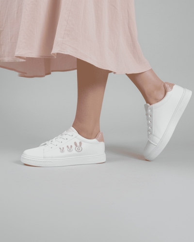Women’s White & Pink Bunny Casual Sneakers | Cute Everyday Wear Shoes | ComfortsBD #509