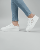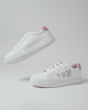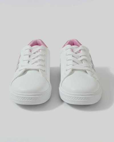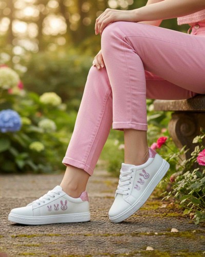 Designed for both style and comfort, these sneakers feature a clean white exterior with pink accents and adorable bunny embroidery — making them perfect for casual outings, office wear, or weekend fun.