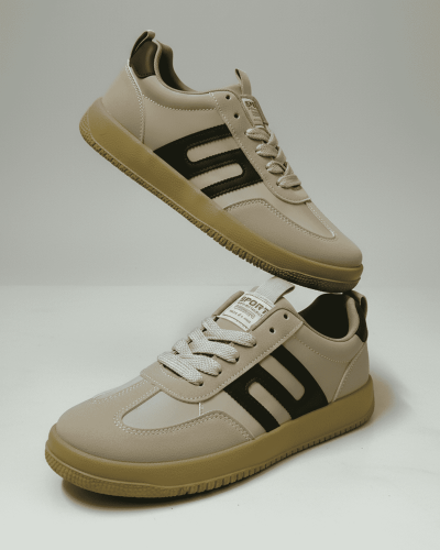 Discover the ultimate in versatile style and everyday comfort with the Men’s Beige Casual Gum-Sole Sneakers from ComfortsBD. Crafted with a smooth neutral-beige synthetic/PU upper (with suede-look panels), this low-top design features a distinctive dark side-stripe and a durable gum rubber outsole that offers excellent grip and durability—gum soles have long been recognized for stable traction in lifestyle sneakers.